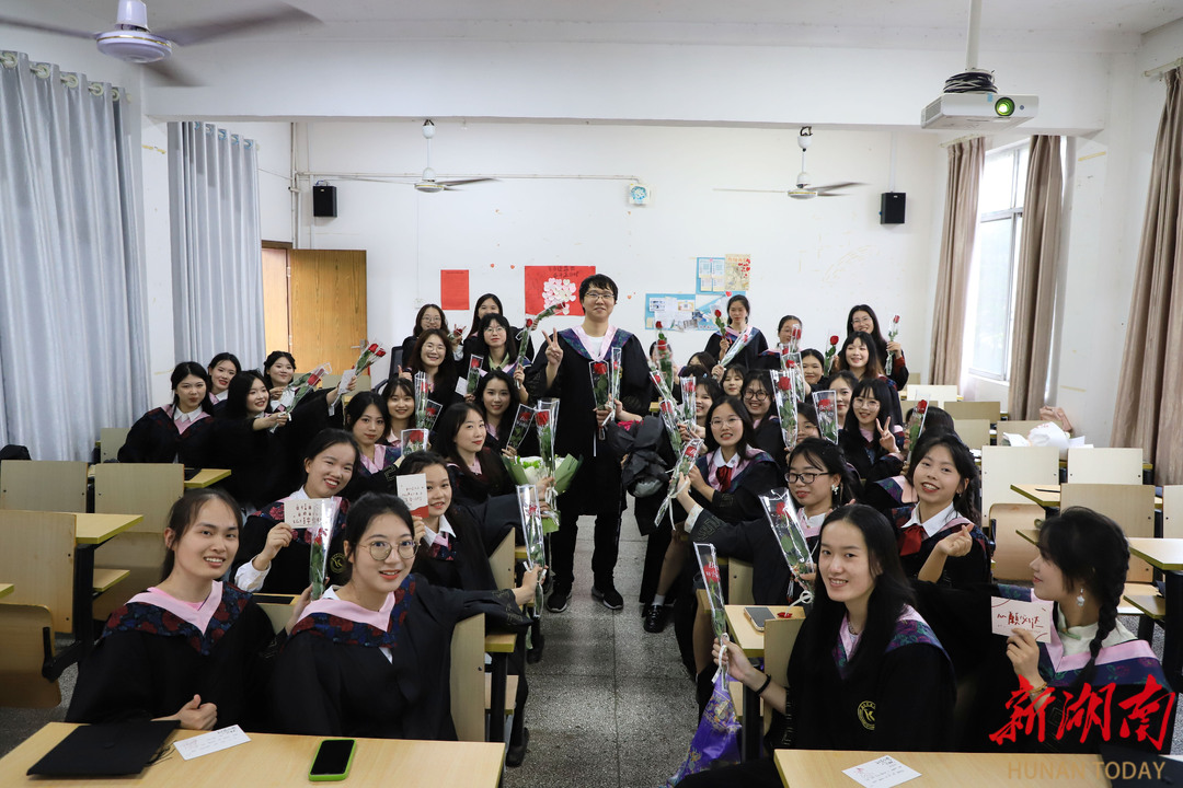 “很幸运我的大学四年遇见了你们,谢谢你们的关照和陪伴!希望毕业后,你们要好好照顾自己!”5月20日下午,买球App软件手机在线下载外国语学院英语师范专业2001班的40名女生,收到了一份特别的毕业礼物——精心准备的花束和手写祝福卡片。送出这份走心毕业礼物的,正是全班唯一的男生,李悟。
