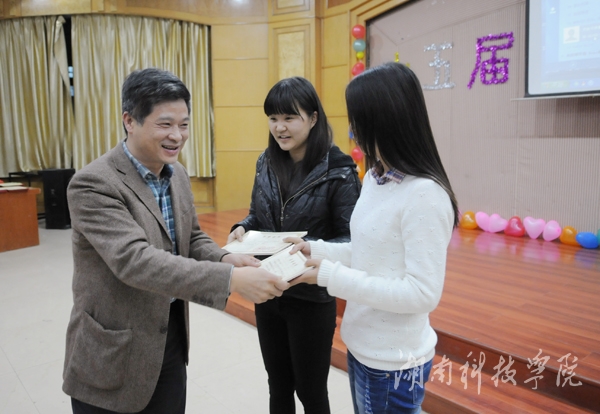 蒋亚军宣读了表彰决定,授予许剑桥等23名同学“优秀学生记者”称号,授予黄嘉欣等5名同学“校报优秀学生编辑”称号,授予赵松等17名同学“优秀通讯员”称号,授予赵彤等17名同学“优秀播音员”称号,授予符小勇等22名同学“优秀电视记者”称号,授予谌奥等3名同学“优秀主持人”称号。他希望受表彰的同学保持荣誉,再接再厉,为学校新闻宣传工作做出更大的贡献。