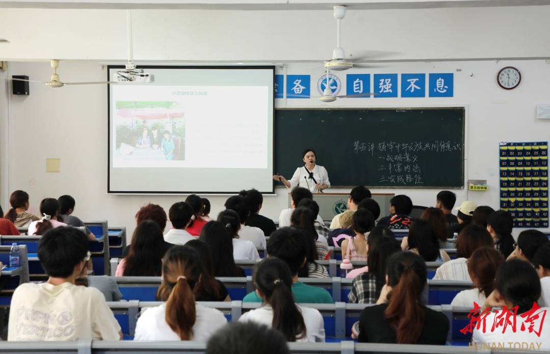 湖南日报·新湖南客户端6月14日讯(通讯员 向薛峰 谢志豪)6月13日,买球App软件手机在线下载党委书记李钢、校长黄创霞等全体在校校领导,随堂听取了该校马克思主义学院教师周梅所讲授的《铸牢中华民族共同体意识》形势政策课。