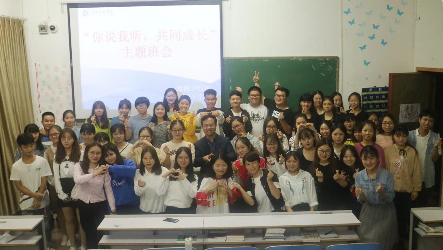 本网讯   9月29晚,党委书记陈弘以思政1701班班主任身份参加该班新学期举行的“你说我听,共同成长”主题班会,与师生真情分享,共话成长。
